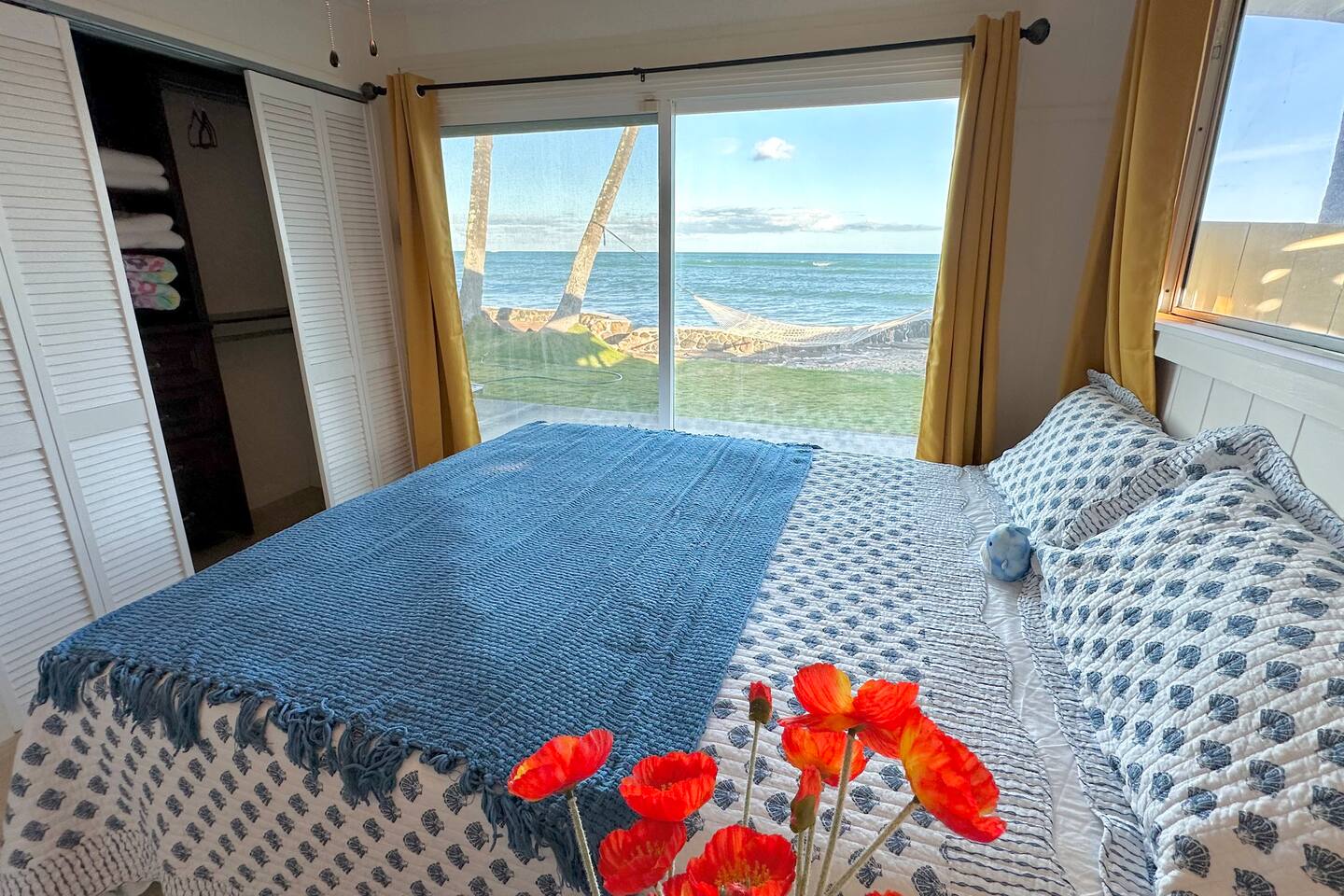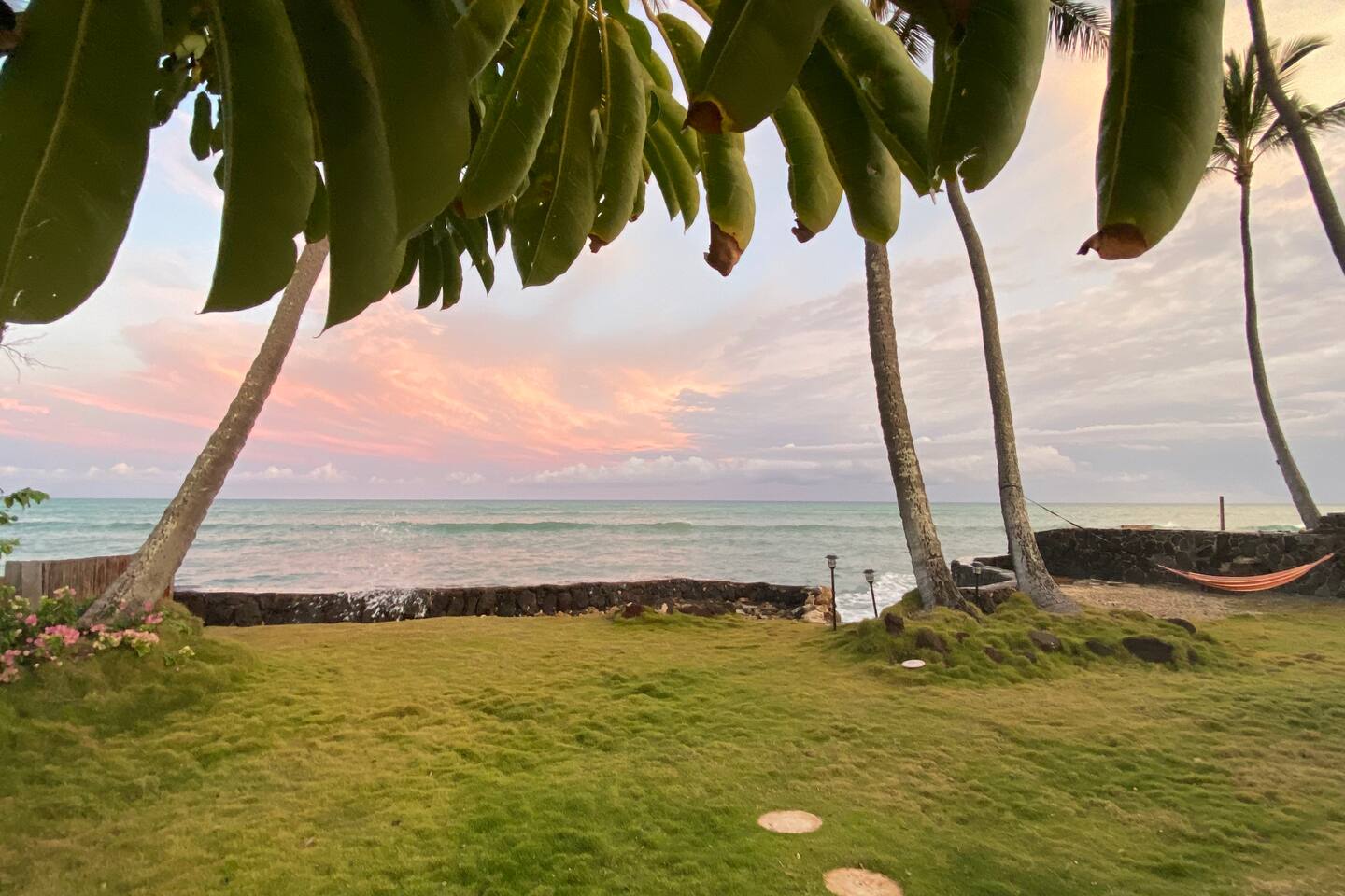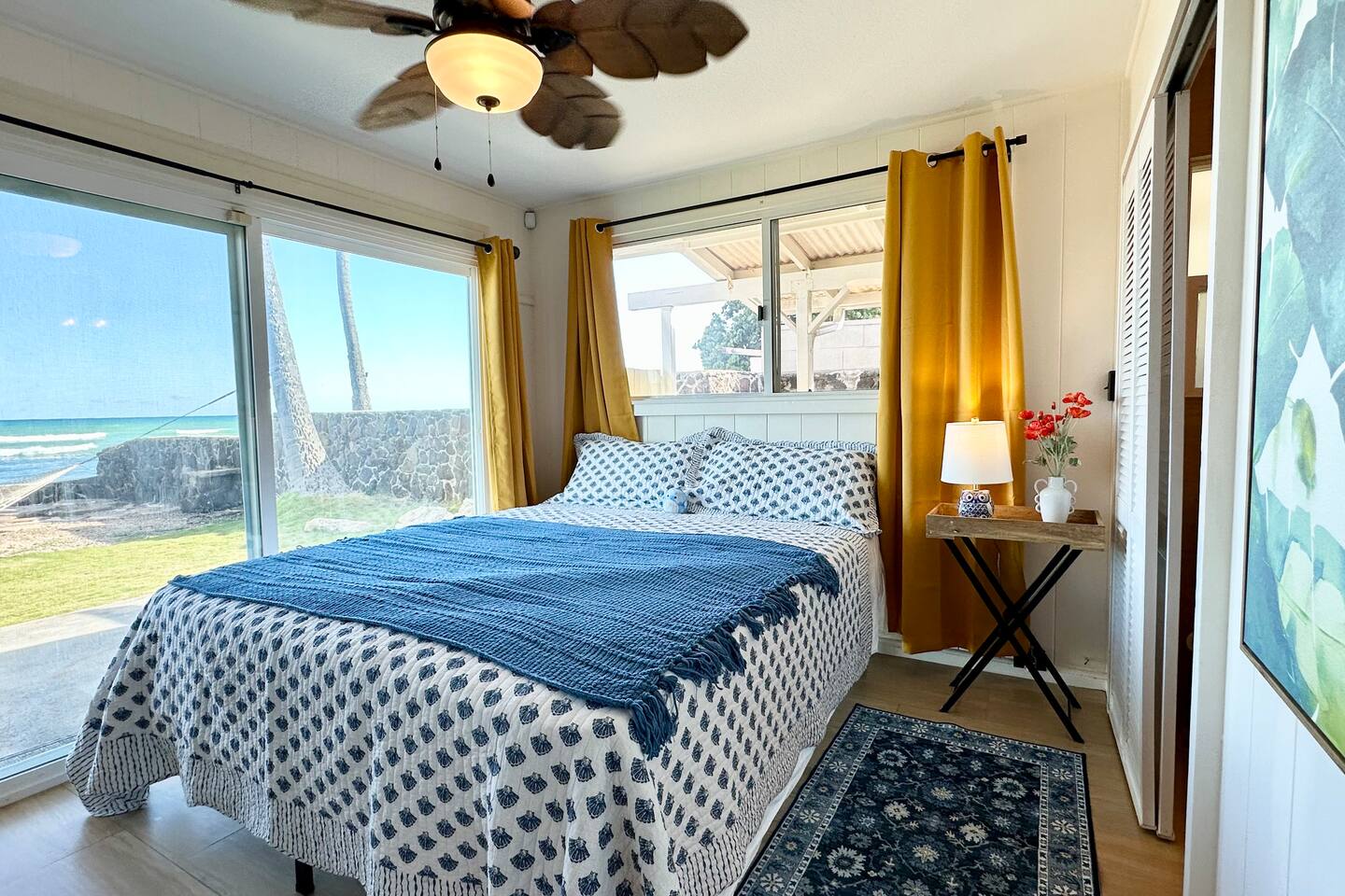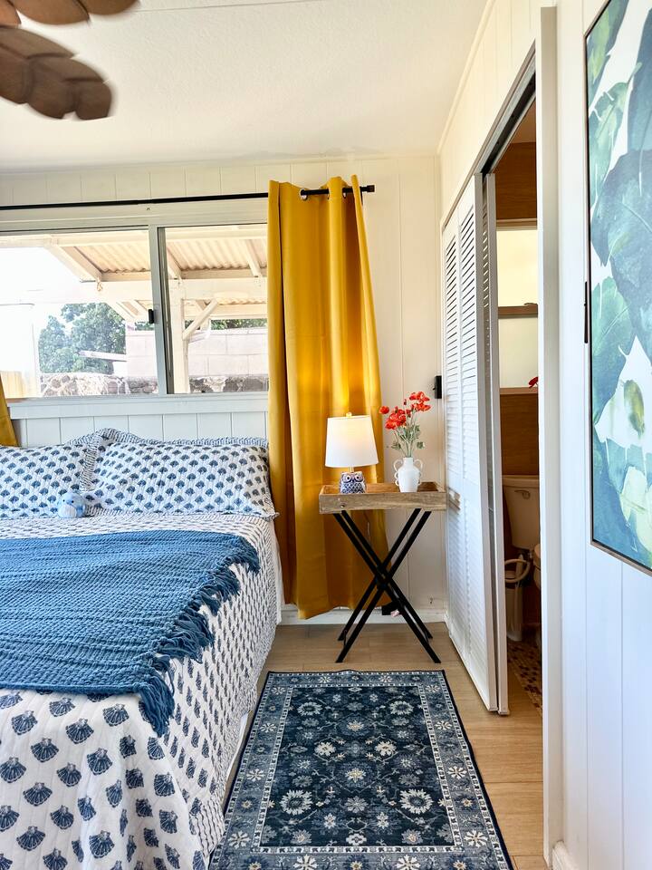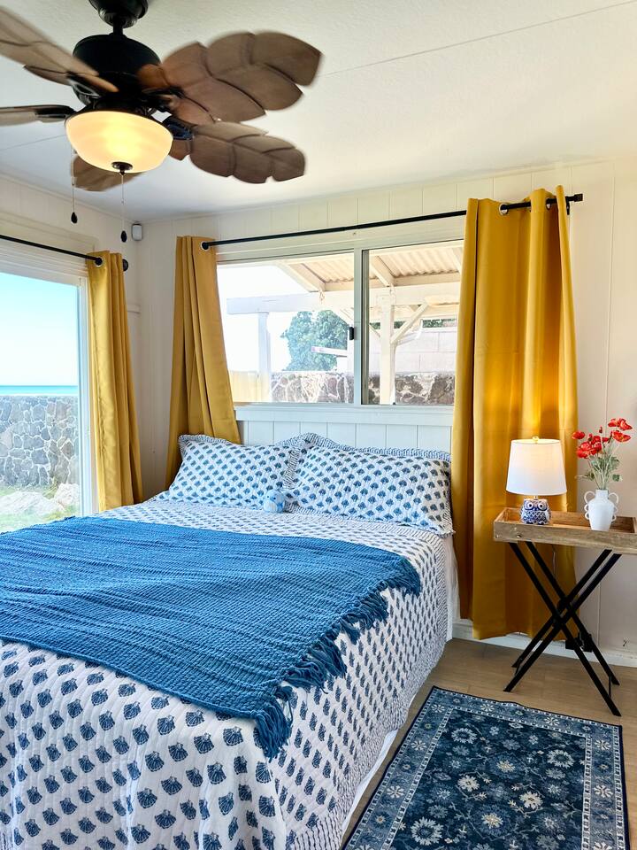 Message us your ideal travel dates—summer, fall, or later—and we’ll do our best to accommodate your stay. Availability changes quickly, so early inquiries are always welcome. Wake up to waves in this peaceful, oceanfront master bedroom—perfect for couples or solo travelers. Enjoy a private bathroom, ceiling fan, cozy king bed, and unbeatable ocean views right from your pillow. Have questions or special dates in mind? Reach out anytime—we’d love to help plan your ideal Hawai‘i escape.