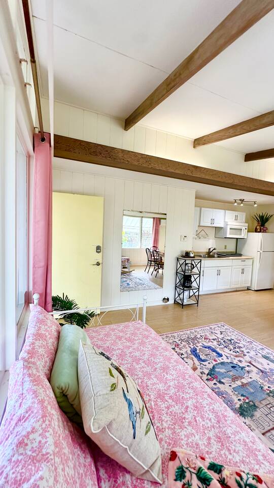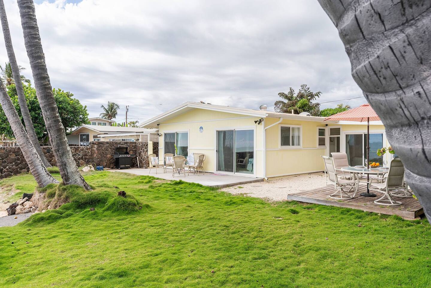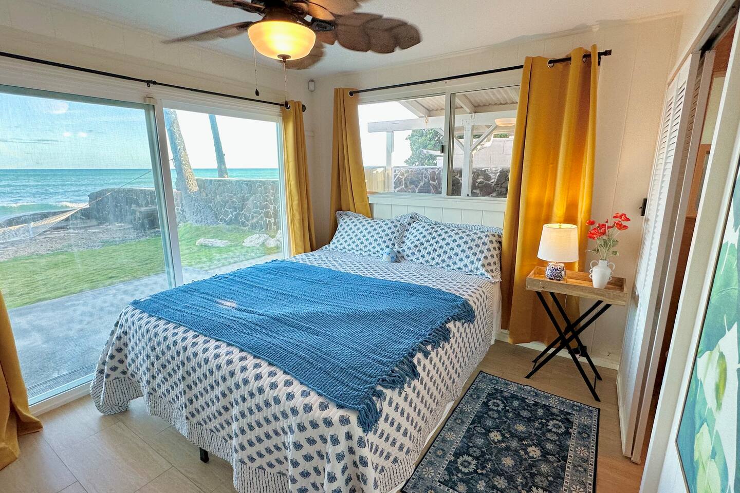Relax at your own private beachfront retreat in Ewa Beach—just steps from the sand. This oceanfront hideaway is perfect for couples, families, or fishing lovers seeking a peaceful escape. The air-conditioned home sleeps up to 8 guests with 2 bedrooms and a bonus area for extra comfort. WHAT YOU’LL LOVE • Cool nights with split AC in the second bedroom • Full kitchen with coffee maker, toaster, and essentials • In-unit washer/dryer—great for families and long stays • BBQ grill and fire pit for sunset meals • Direct beach access to relax or fish by the shore • Enjoy sunrise coffee by the ocean and twinkling city lights at night SLEEPING SETUP • Master Bedroom: 1 King bed + private bathroom • Second Bedroom: 1 King bed, split AC, full bath across the hall • Living Room: 1 Day bed with trundle + 2 rollaway —ideal for kids or extra guests Free 940 Mbps fiber internet 940 Mbps package. Extended monitor available upon request. EXPLORE NEARBY Just a short drive away, Ewa Beach Park offers perfect waves for surfing and bodyboarding with plenty of open space for picnics or sunsets. For calm swimming, Ko Olina Lagoon is a family favorite, featuring crystal-clear waters ideal for kids, relaxing beach days, and beginner-friendly snorkeling. Explore local eateries, nearby golf courses, and scenic shoreline paths—all while enjoying the laid-back charm of West Oahu. Your peaceful Hawaii escape starts here—private, scenic, and unforgettable.